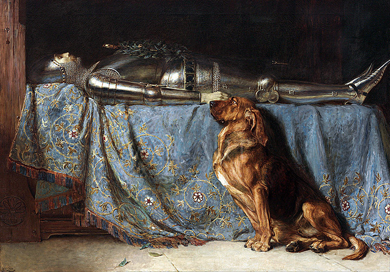 Бритън Ривиер (1840–1920) е английски художник-анималист и скулптор от хугенотски произход, известен с това, че съчетава класически теми с животни, особено кучета и лъвове, често със сантиментални или алегорични елементи. Роден в Лондон, той получава художествено образование от баща си и учи в Оксфорд, като в крайна сметка става Кралски академик през 1881 г. Творбите му придобиват популярност заради антропоморфното изобразяване на животни и теми за лоялност и преданост, въпреки че рисува и исторически и жанрови сцени.