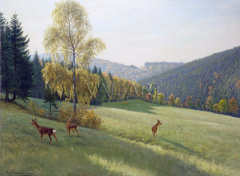 Карл Цимерман (1863 – 1930) е немски художник – реалист. Ученик е на Паул Фридрих Майер Хоум. Рисува пейзажи, животни и ловни сцени. Притежава фотографска памет и големи познания за местообитанията и навиците на дивите животни. Първоначално живее в Мюнхен, а след това от 1896 г. в Берлин. Активно работи в Гослар през 1915 г. Участва в изложби в Стъкления дворец в Мюнхен и в големите берлински художествени галерии.