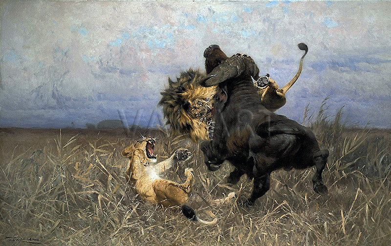 РЕПРОДУКЦИИ НА КАРТИНИ Лъвове в битка c бивол (1921)