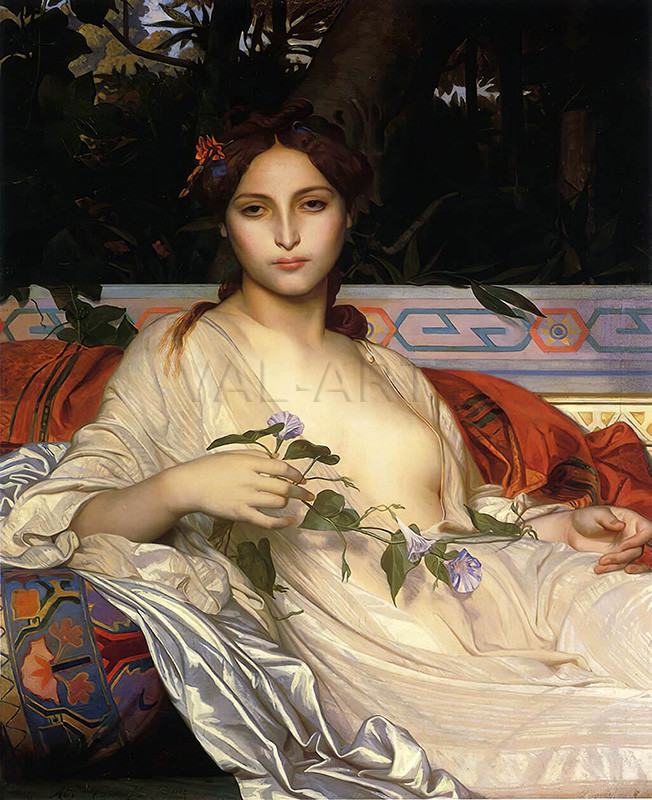 Албайде (1848) Картината е нарисувана, когато художникът е живял в Рим. Тя изобразява момиче, облечено в блуза с дълбоко деколте, поставена на фона на гъста растителност. Темата е Албайде, героиня от стихосбирката на Виктор Юго „Източни“ за Гръцката война за независимост. Преждевременната ѝ смърт на петнадесетгодишна възраст е разказана в поемата му „Змийските кълба“. В ориенталистичен стил тя е изобразена по съблазнителен начин, като легнала одалиска, облечена в семпла рокля, на харемен диван, държейки цъфтящ цвят на поветица. Всъщност тя е била робиня, държана там като затворница. Изражението ѝ изглежда отсъстващо, а прекомерната белота на кожата ѝ сякаш предвещава преждевременната ѝ смърт.