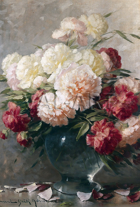 Ейдриан Ненсън Дийк (1890 - 1956) е видна унгарска художничка, известна със своите детайлни и наситени с цвят натюрморти. Творбите ѝ се характеризират с импресионистичен подход и умело предаване на светлината и текстурите. Тя се утвърждава като майстор на флоралните натюрморти (цветя във вази), често изобразявайки божури, рози, люляци и маргаритки. Нейни произведения редовно се предлагат в големи аукционни къщи като Christie’s, като през последните години има засилен интерес към нейни творби в САЩ и Европа.
