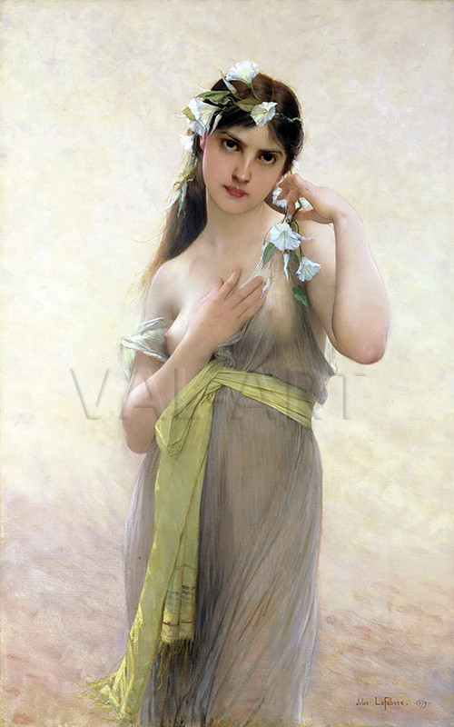Жул Жозеф Льофевр (1836 – 1911) е виден френски художник от 19-ти век, известен с класическия си, академичен стил на рисуване. Роден е в Турнан-ан-Бри, Франция. Започва художественото си обучение в École des Beaux-Arts в Париж. Бързо получава признание за изключителния си талант и през 1861 г. е удостоен с престижната Римска награда, която му позволява да учи в Италия в продължение на няколко години. През цялата си кариера Льофевр се фокусира върху човешката форма и красотата на природата, често изобразявайки класически сцени от митологията и литературата. Той е майстор на академичния стил на живопис, който набляга на техническите умения и прецизен рисунък. Неговите произведения са високо ценени за техническото им майсторство и способността им да улавят красотата на човешкото тяло. Оказал е голямо влияние върху академичното художествено движение от този период и неговите произведения са послужили като източник на вдъхновение за много дизайнери и художници. Творбите му са високо търсени както от галерии, така и от колекционери. Като цяло, Жул Жозеф Льофевр е бил много влиятелен художник на 19-ти век, оставил трайно наследство в света на изкуството. Изключителният му талант и технически умения му позволили да създаде стойностни произведения, които продължават да вдъхновяват художници и любители на изкуството и днес.