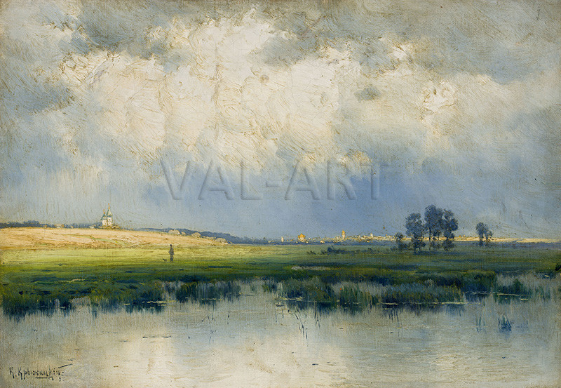Константин Яковлевич Крижицкий (1858 - 1911) Знаменит руски живописец. Завършва Императорската академия за изобразително изкуство, където е академик от 1889 г. Пейзажист - Работи с масло, акварел и молив, главно в Киевската губерния и околностите на Петербург. Крижицки е известен с мащабните си композиции, в които умело съчетава разнообразния терен, драматичното небе и обширните гледки на родния си край. До нас са достигнали около 400 творби на художника. През 1900 г. на Световното изложение в Париж са показани негови картини, които се радват на изключителен интерес. Невероятно чувствителен – завършва живота си със самоубийство, омерзен от сплетници, които го обвиняват в плагиатство.