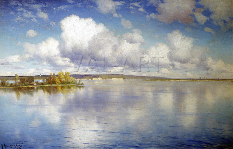 Константин Яковлевич Крижицкий (1858 - 1911) Знаменит руски живописец. Завършва Императорската академия за изобразително изкуство, където е академик от 1889 г. Пейзажист - Работи с масло, акварел и молив, главно в Киевската губерния и околностите на Петербург. Крижицки е известен с мащабните си композиции, в които умело съчетава разнообразния терен, драматичното небе и обширните гледки на родния си край. До нас са достигнали около 400 творби на художника. През 1900 г. на Световното изложение в Париж са показани негови картини, които се радват на изключителен интерес. Невероятно чувствителен – завършва живота си със самоубийство, омерзен от сплетници, които го обвиняват в плагиатство.
