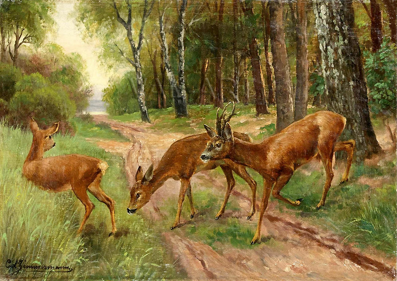 Карл Цимерман (1863 – 1930) е немски художник – реалист. Ученик е на Паул Фридрих Майер Хоум. Рисува пейзажи, животни и ловни сцени. Притежава фотографска памет и големи познания за местообитанията и навиците на дивите животни. Първоначално живее в Мюнхен, а след това от 1896 г. в Берлин. Активно работи в Гослар през 1915 г. Участва в изложби в Стъкления дворец в Мюнхен и в големите берлински художествени галерии.