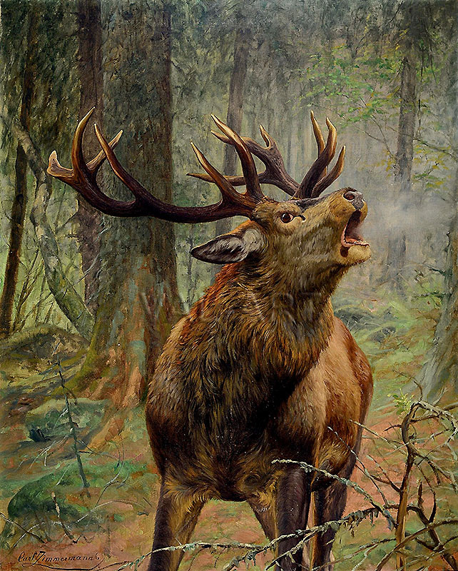 Карл Цимерман (1863 – 1930) е немски художник – реалист. Ученик е на Паул Фридрих Майер Хоум. Рисува пейзажи, животни и ловни сцени. Притежава фотографска памет и големи познания за местообитанията и навиците на дивите животни. Първоначално живее в Мюнхен, а след това от 1896 г. в Берлин. Активно работи в Гослар през 1915 г. Участва в изложби в Стъкления дворец в Мюнхен и в големите берлински художествени галерии.