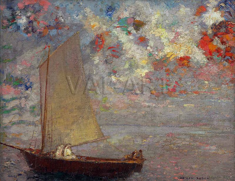 Одилон Редон (1840 – 1916) е известен френски художник, виден преставител на символизма. Той е ключова фигура в художественото движение от края на 19-ти век, преодолявайки пропастта между импресионистите и символистите. Известен е със своите ефирни, подобни на сънища произведения, които изследват вътрешните механизми на човешката психика, често изобразявайки митични същества, пленителни пейзажи и загадъчни фигури. Учи живопис в Париж при Жан-Леон Жером, а след това офорт и литография в родния си град при Родолф Брезден и е особено привлечен от произведенията на Рембранд и Делакроа. Кариерата на Редон започва със серия рисунки с въглен, наречени „ноар“, които се характеризират с мрачните си, фантастични сюжети и майсторското използване на светлината и сянката. През 1890-те години изкуството му претърпява голяма промяна: той приема цвета, обръщайки гръб на графичната работа в полза на маслените картини и пастелите. Това отчасти се дължи на влиянието на неговия приятел Пол Гоген. Редон е бил запален читател, а темите на неговите цветни произведения включват редица религиозни фигури и герои от класическата митология. Най-известните му картини обаче са натюрмортите с цветя, които започва през 1900 г. и създава в големи количества. Уникалният подход на Редон към символизма, който набляга на внушението и двусмислието пред буквалното представяне, оказва дълбоко влияние върху развитието на съвременното изкуство и той остава известен със своята уникална визия и способността си да извиква мистериозното и възвишеното чрез изкуството си.