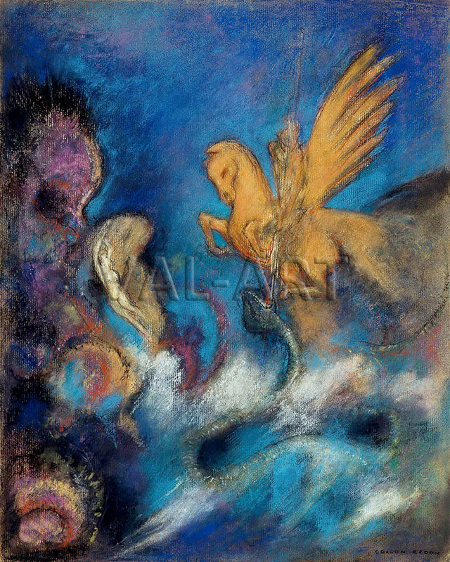 Одилон Редон (1840 – 1916) е известен френски художник, виден преставител на символизма. Той е ключова фигура в художественото движение от края на 19-ти век, преодолявайки пропастта между импресионистите и символистите. Известен е със своите ефирни, подобни на сънища произведения, които изследват вътрешните механизми на човешката психика, често изобразявайки митични същества, пленителни пейзажи и загадъчни фигури. Учи живопис в Париж при Жан-Леон Жером, а след това офорт и литография в родния си град при Родолф Брезден и е особено привлечен от произведенията на Рембранд и Делакроа. Кариерата на Редон започва със серия рисунки с въглен, наречени „ноар“, които се характеризират с мрачните си, фантастични сюжети и майсторското използване на светлината и сянката. През 1890-те години изкуството му претърпява голяма промяна: той приема цвета, обръщайки гръб на графичната работа в полза на маслените картини и пастелите. Това отчасти се дължи на влиянието на неговия приятел Пол Гоген. Редон е бил запален читател, а темите на неговите цветни произведения включват редица религиозни фигури и герои от класическата митология. Най-известните му картини обаче са натюрмортите с цветя, които започва през 1900 г. и създава в големи количества. Уникалният подход на Редон към символизма, който набляга на внушението и двусмислието пред буквалното представяне, оказва дълбоко влияние върху развитието на съвременното изкуство и той остава известен със своята уникална визия и способността си да извиква мистериозното и възвишеното чрез изкуството си.