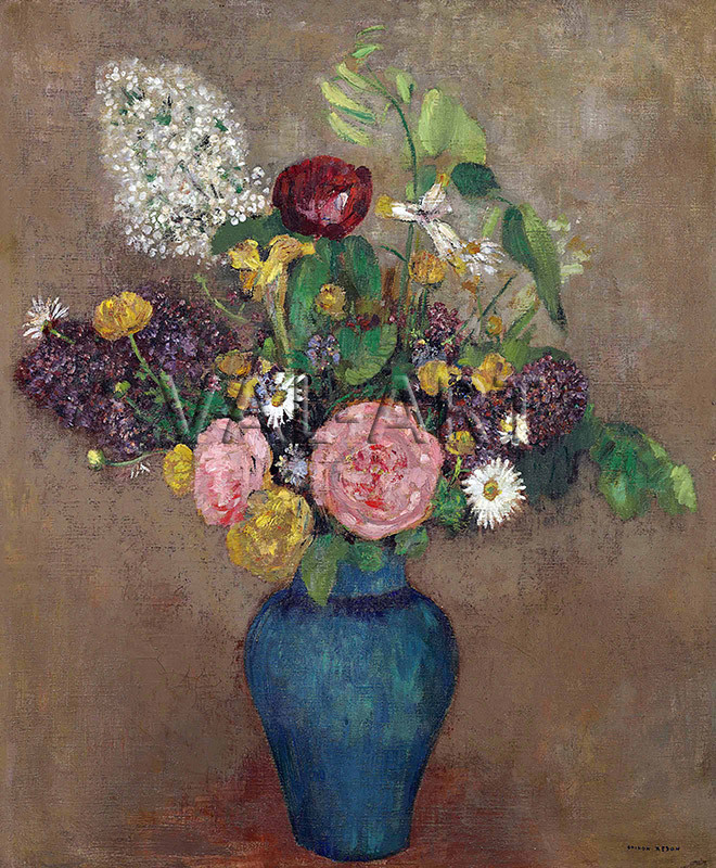 Одилон Редон (1840 – 1916) е известен френски художник, виден преставител на символизма. Той е ключова фигура в художественото движение от края на 19-ти век, преодолявайки пропастта между импресионистите и символистите. Известен е със своите ефирни, подобни на сънища произведения, които изследват вътрешните механизми на човешката психика, често изобразявайки митични същества, пленителни пейзажи и загадъчни фигури. Учи живопис в Париж при Жан-Леон Жером, а след това офорт и литография в родния си град при Родолф Брезден и е особено привлечен от произведенията на Рембранд и Делакроа. Кариерата на Редон започва със серия рисунки с въглен, наречени „ноар“, които се характеризират с мрачните си, фантастични сюжети и майсторското използване на светлината и сянката. През 1890-те години изкуството му претърпява голяма промяна: той приема цвета, обръщайки гръб на графичната работа в полза на маслените картини и пастелите. Това отчасти се дължи на влиянието на неговия приятел Пол Гоген. Редон е бил запален читател, а темите на неговите цветни произведения включват редица религиозни фигури и герои от класическата митология. Най-известните му картини обаче са натюрмортите с цветя, които започва през 1900 г. и създава в големи количества. Уникалният подход на Редон към символизма, който набляга на внушението и двусмислието пред буквалното представяне, оказва дълбоко влияние върху развитието на съвременното изкуство и той остава известен със своята уникална визия и способността си да извиква мистериозното и възвишеното чрез изкуството си.