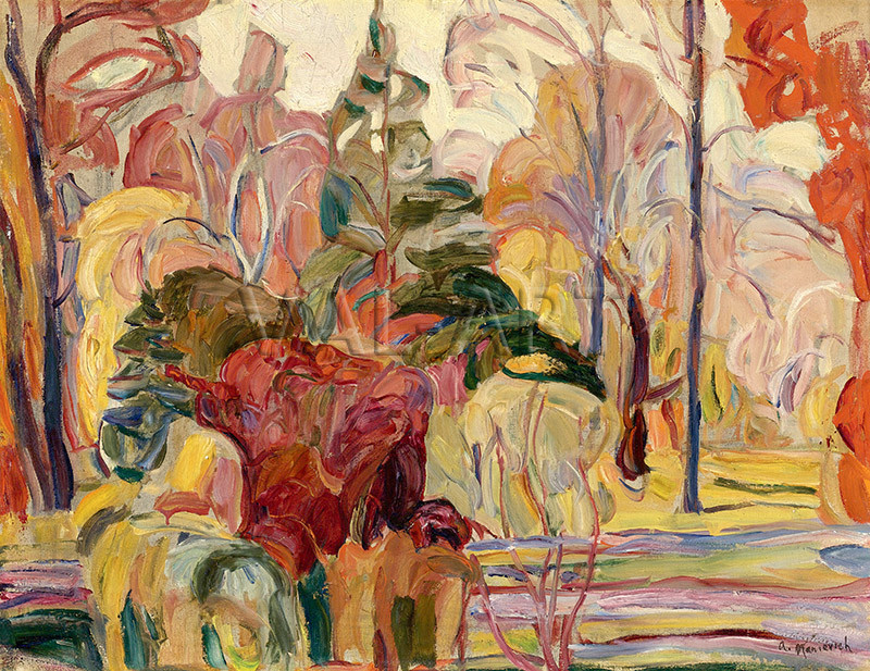 Абрам Аншелович Маневич (1881–1942) е виден белоруско -  украинско-американски художник от еврейски произход. Стилът му е уникален синтез от няколко модернистични течения. Постимпресионизъм и Фовизъм - Маневич използва ярки, наситени и често нереалистични цветове. Неговият колорит е експресивен и смел, напомнящ за работата на френските фовисти. Експресионизъм - той често деформира пространството и формите, за да предаде вътрешното състояние или атмосферата на мястото.  Модерн (Сецесион) - Неговият стил включва сложна „линейна орнаменталност“ и декоративност, типични за мюнхенския и виенския сецесион, които той изучава в Германия. През 1921 г. Маневич емигрира със семейството си в САЩ, установявайки се в Ню Йорк. Там продължава да работи, изобразявайки индустриални пейзажи и градски изгледи на Бронкс и други райони. Маневич е бил близък приятел на Алберт Айнщайн, който високо е ценил творчеството му и е написал предговора към негов изложбен каталог. Картини на художника се намират в много големи музеи и галерии, както и често се появяват на големи търгове като Sotheby’s и Christie’s, където достигат високи цени.