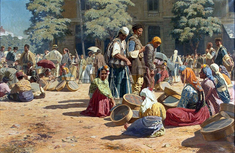 РЕПРОДУКЦИИ НА КАРТИНИ Цигани продават сита на софийския пазар (1904)
