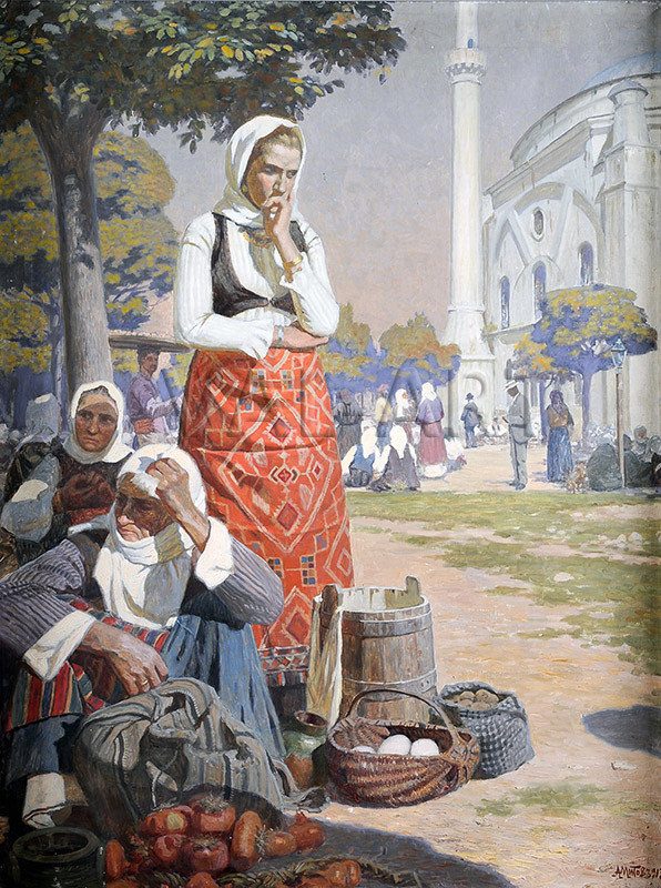 РЕПРОДУКЦИИ НА КАРТИНИ Група селянки на пазар в Силистра (1913)