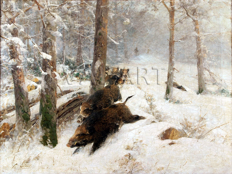 РЕПРОДУКЦИИ НА КАРТИНИ Диви свине в снежен пейзаж (1901)