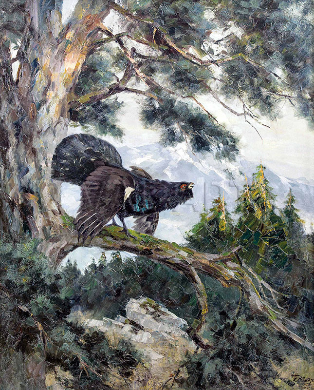 РЕПРОДУКЦИИ НА КАРТИНИ Глухар демонстриращ ухажването си във високата гора (1932)