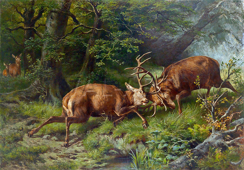 РЕПРОДУКЦИИ НА КАРТИНИ Биещи се елени (1887)