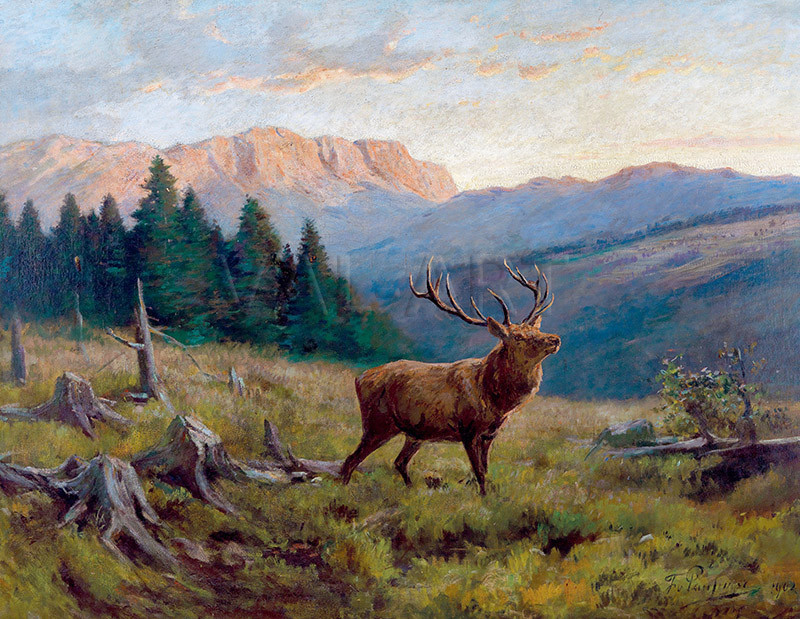 Франц Ксавер фон Паусингер (1839 –1915) е изтъкнат австрийски художник, график и илюстратор, признат за един от най-значимите майстори на пейзажната и животинската живопис на своето време. Получава академичното си образование в художествените академии във Виена и Карлсруе, както и при известния швейцарски художник Рудолф Колер в Цюрих. Паусингер се специализира в изобразяването на алпийската природа и дивите животни. Неговите творби често представят елени, сърни, лисици и глухари в естествената им среда. Творчеството му съчетава прецизна научна точност с романтичен поглед към природата. По-късните му произведения показват влияние от импресионизма чрез специфичната игра на светлина и сенки. През 1881 г. придружава австрийския престолонаследник принц Рудолф по време на пътуването му в Ориента, което му носи широка популярност и множество поръчки от висшата аристокрация.
