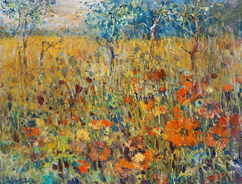 РЕПРОДУКЦИИ НА КАРТИНИ Дървета на поляна с цъфтящи макове (1924)