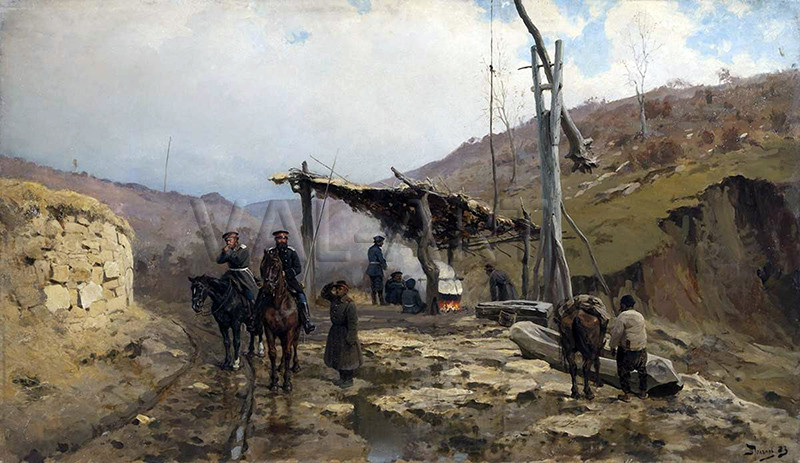 Василий Дмитриевич Поленов (1844–1927) е забележителен руски художник, един от най-значимите майстори на своето време. Той е учител, майстор на историческата, пейзажната и жанровата живопис, новатор на техниката на пленера. Академик, професор и редовен член на Императорската академия на изкуствата, народен художник на РСФСР. Рисуването е неразделна част от живота на Поленов от ранно детство. След като завършва Академията на изкуствата, младият художник предприема пътешествие из европейски страни и се запознава с европейското изкуство. В продължение на много години Василий Дмитриевич търси свой собствен стил и посока, и вече известен художник се спира на жанровата живопис и пейзажите. Негови картини са закупени от най-известните ценители на изкуството в Русия, включително Павел Третяков и цар Александър III. Василий Поленов е тясно свързан с България чрез участието си в Руско-турската освободителна война (1877–1878). Той заминава за фронта като доброволец и официален художник към главната квартира на руската армия. Престоят му в страната оставя значима следа в творчеството му. За разлика от други батални художници, Поленов се фокусира не толкова върху самите битки, колкото върху човека, бита и природата. Неговите платна от този период акцентират върху българската етнография и всекидневния живот на местното население.