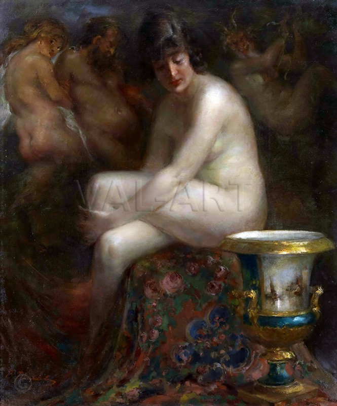 Виталий Гаврилович Тихов (1876–1939) е виден руски и съветски художник, известен най-вече със своята жанрова живопис и майсторското изобразяване на женското тяло. През 1904 г. постъпва в Императорската художествена академия, където негов учител е легендарният Владимир Маковски. Завършва през 1912 г. Стилът на Тихов се определя като синтез между класическия руски реализъм на передвижниците и влиянието на импресионизма, като той е един от най-ярките представители на жанра ню (гола натура) в Русия в началото на XX век. Въпреки реалистичната си основа, художникът използва езика на импресионизма, за да улови играта на светлината върху човешкото тяло. Картините му особено тези от цикъла „Къпещи се“, са пропити със слънчева светлина, ярки цветове и усещане за радост и жизненост. Негови творби днес се съхраняват в престижни институции като Държавния руски музей и Третяковската галерия, както и в много частни колекции по света.